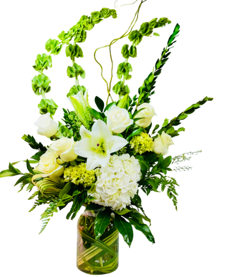 Snow white blooms and eye-catching greens create this beautiful botanical gift that's a peaceful addition to any occasion.
