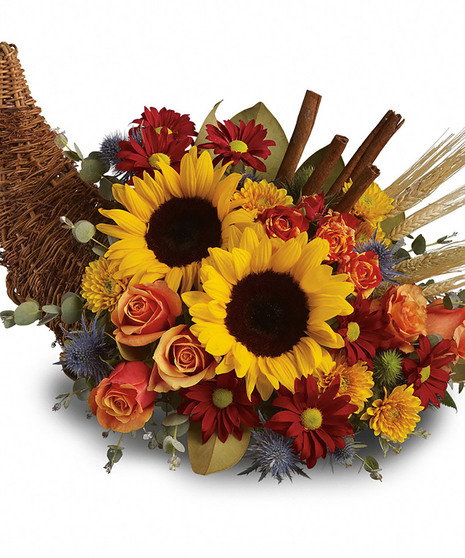 Harvest Abundance Cornucopia. Where Joy Meets Autumn Splendor. A rustic cornucopia overflowing with the very essence of fall—vibrant flowers, textured foliage, and the promise of cozy gatherings. Our Harvest Abundance Cornucopia brings joy and elegance to any space, whether it graces your dining table, mantel, or entryway. Perfect for anyone.